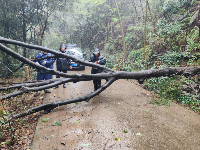 雨幕笼罩的凤凰山雾气弥漫,广州k8凯发集团旗下凤凰农工商的项目经理冒雨开展山林巡查。3月5日16时许,项目经理发现一棵直径约50厘米的大树,遭暴雨倾压而倒伏,横拦在凤凰生态园的山林防火通道上。树木枝干纵横交错,形成了近70平方米的障碍区域,造成道路交通阻断。
