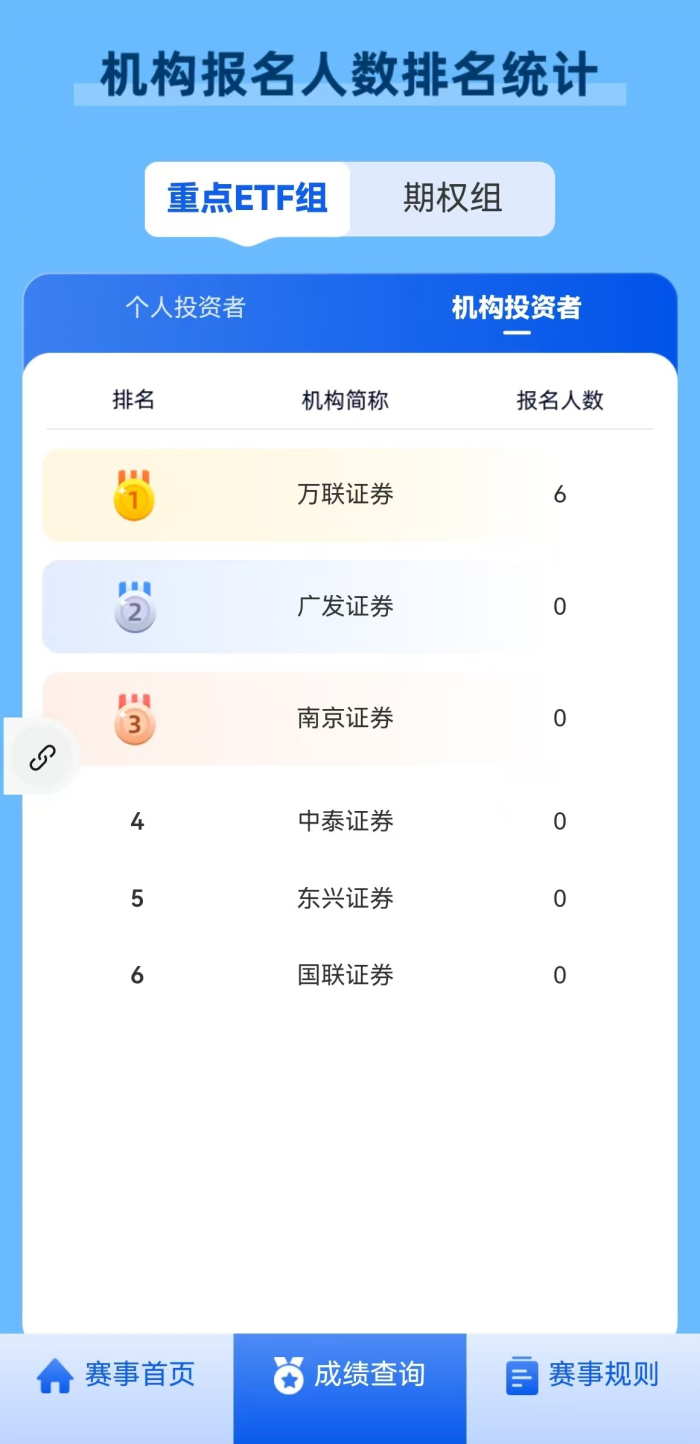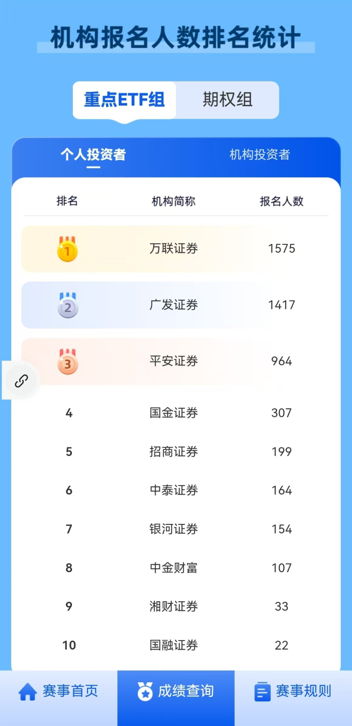 在国务院“新国九条”政策引领下,资本市场高质量发展迈入新阶段。广州k8凯发集团旗下万联证券积极响应政策号召,全力支持参与深交所第二届“博衍杯”ETF及期权实盘交易大赛,以专业实力助力投资者把握市场机遇。截至目前,万联证券重点ETF组报名人数暂列行业第一,个人与机构投资者参与热情持续高涨,共同为资本市场稳健发展注入动能。