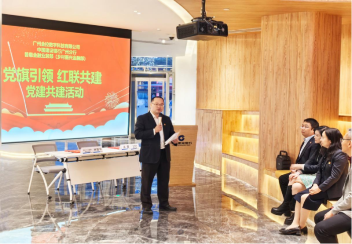 建行广州分行普惠金融业务部总经理林智华提出共建核心方向,一是以党建为纽带,通过联合开展主题党日、党课学习、外出参观等活动,深化党建领域交流,同步推动业务场景融合;二是依托大数据、人工智能技术提升风险识别能力,持续拓展多元化业务合作;三是聚焦地区小微企业服务需求,积极践行社会责任,全面提升金融服务质效;四是联合开展课题研究、促进双方互学互鉴,尤其在大数据应用领域寻求广金数科专业支持,实现核心能力共同提升。他强调,将以此次党建共建为重要起点,切实把党建优势转化为推动金融事业高质量发展、助力区域经济转型升级的强大动力。