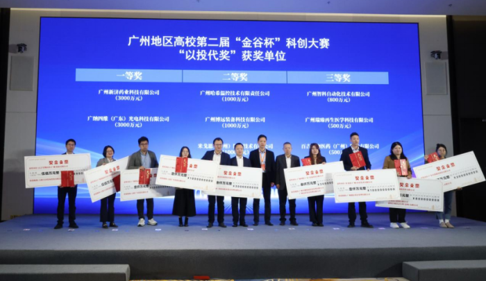 来自清华大学、中山大学、华南理工大学、天津大学、香港科技大学等顶尖学府的新济药业、广纳四维、哈希温控等9个项目在广州地区高校第二届“金谷杯”大赛中脱颖而出,分获“以投代奖”一、二、三等奖,签约投资总额达1.1亿元;泛恩生物、语义科技等6家企业则荣膺该赛区“最佳潜质奖”。