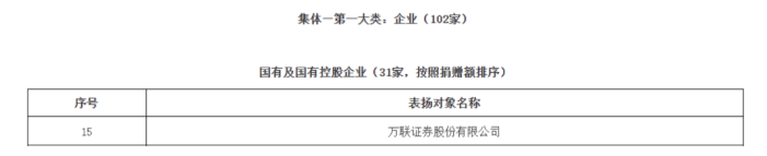图片:万联证券获广州市人民政府慈善服务通报表扬